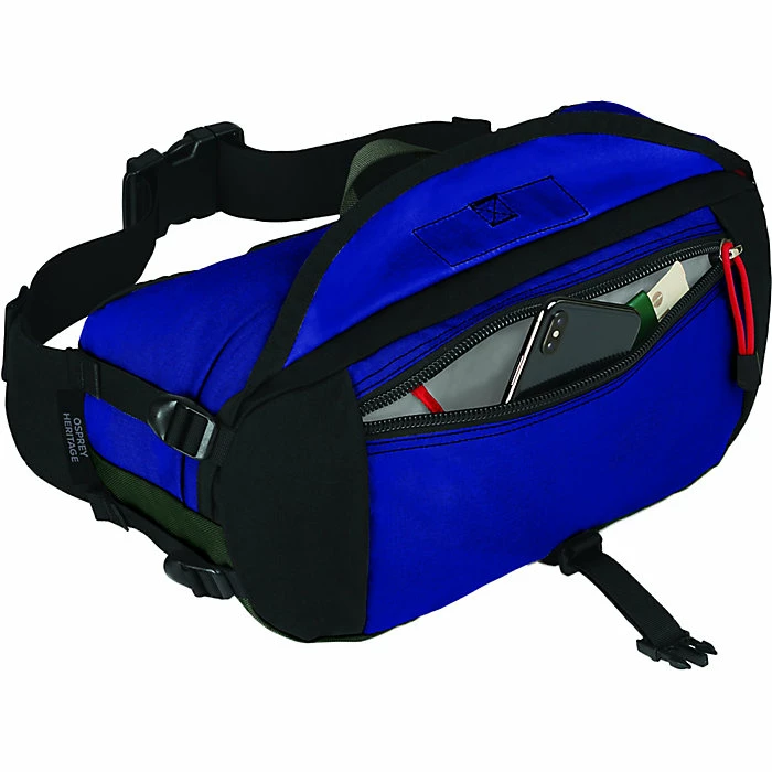 The Osprey Heritage Waist Pack is a lumbar pack for holding onto your daily essential items. Day hikes and city adventure, bike rides and end-of-season trips to the amusement park. Built with sustainable, recycled nylon, it’s tough and designed to withstand daily use. Stuff a rain shell or extra layer into the larger main compartment while phone and keys can slide into the smaller front pocket. Pull the compression straps inward to cinch it down and off you go.