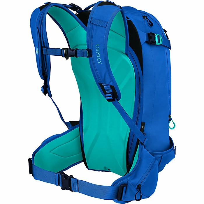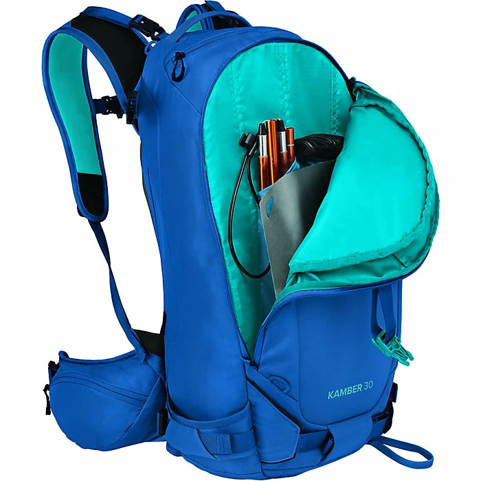 - Avalanche safety kit storage with shovel handle and probe sleeves