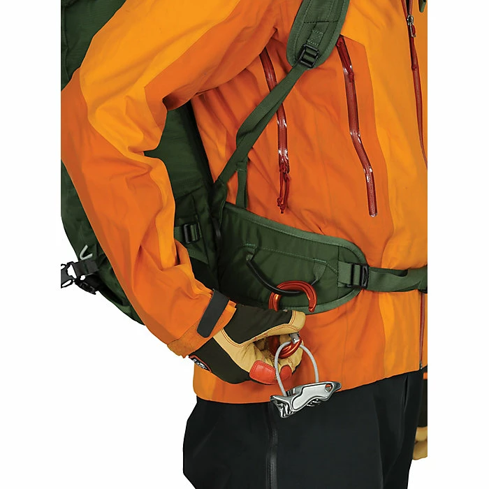 - Single-zippered hipbelt pocket/single hipbelt gear loop