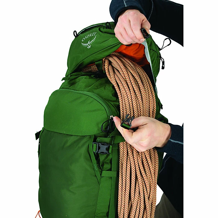 - Under-lid adjustable rope compression strap provides stable and easily accessible rope carry
