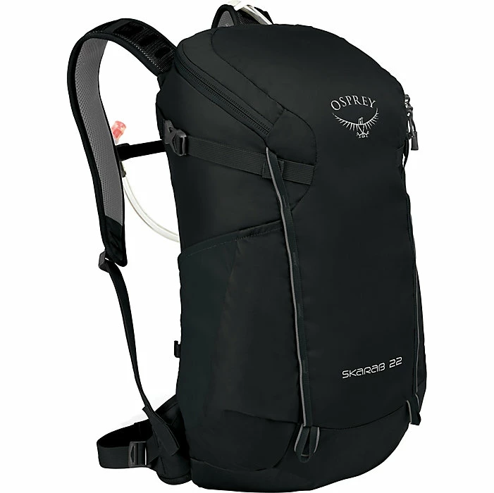 The Osprey Skarab 22 Backpack is a lightweight pack for day hiking. The included Hydraulics® LT 2.5L reservoir carries the water and the pack carries the reservoir in the back sleeve. The 22L size allows you to carry rain gear, snacks and even a hammock in the main compartment while you explore the trails for the day.