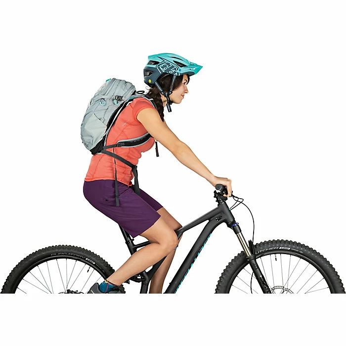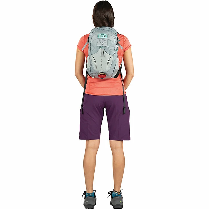 The Osprey Sylva 12 Hydration Pack is a lightweight daypack that carries the essentials and provides hands-free hydration while mountain biking. An AirSpeed™ 3D tensioned mesh backpanel helps keep your back cool on the ride, and the shoulder straps are designed with a curve that contours to your body as you reach for the handlebars. The included 2.5L Hydraulics® LT bladder lives in its own compartment, providing easy access for quick fill-ups. Side compression straps and a low-profile waistbelt enhance stability, the stretch mesh pocket on the front is great for stashing layers, and the integrated raincover really comes in handy if you get caught in a shower.