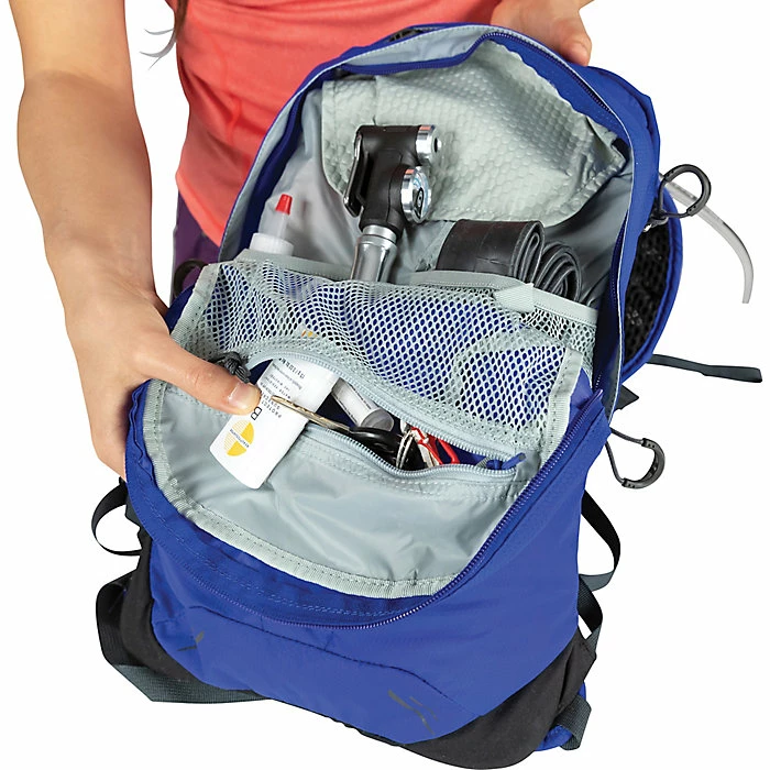 The Osprey Sylva 5 Hydration Pack is a technical pack for mountain biking. Small but mighty, the 5L size organizes your bike accessories such as pump and an extra tube while also hanging onto an included Osprey Hydraulics® LT 2.5L reservoir. A girl’s gotta hydrate.