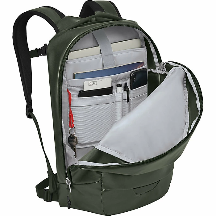 The Osprey Transporter Panel Loader Pack is a simple backpack for daily life. A 20L pack that makes commuting easy, whether you’re headed to class or work. The interior features a padded 16″ laptop sleeve, and a weatherproof exterior fabric that gets you through a rainy day. Lots of organization for the little things, plus space for rain jacket, lunch, and an extra book or tablet.