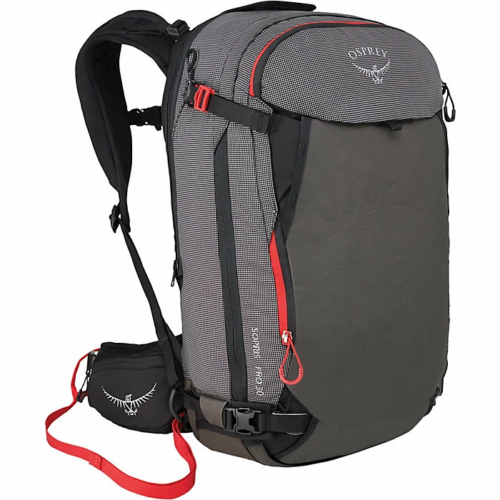 - Large front panel J-zip access to avalanche safety kit pocket with shovel handle and probe sleeves