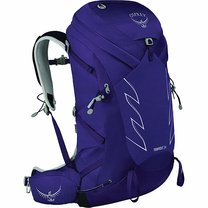 The Osprey Women’s Tempest 34 Backpack is a technical hiking pack made for full days out on the trails and minimalist overnight trips. The BioStretch harness and continuous hipbelt are designed to hug the body for optimal stability on tough terrain. Side compression straps also help with balance, and the molded AirScape backpanel keeps you cool and comfortable on the move. You also have zippered hipbelt pockets for keeping personal items (and a snack) close at hand, storage loops for trekking poles and ice axes, an external hydration sleeve, and a stretch mesh pocket on the front that’s great for stashing wet raingear.